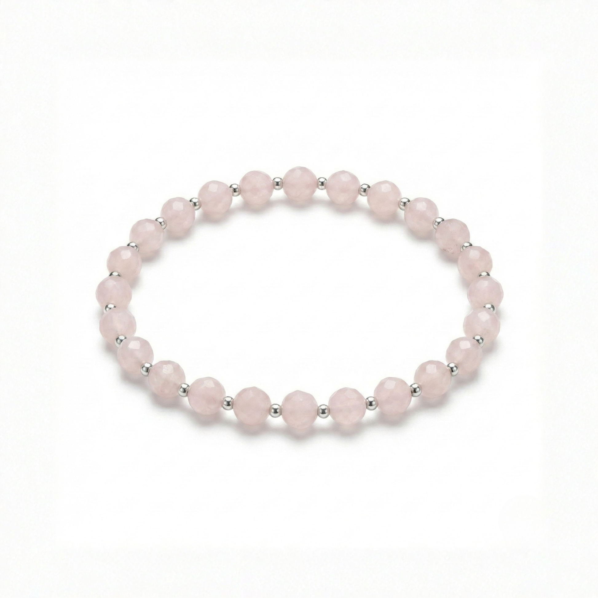 Kwarc różowy to kamień miłości, radości. Przyciąga pozytywne zdarzenia i ludzi. Srebrne przekładki ze stali.